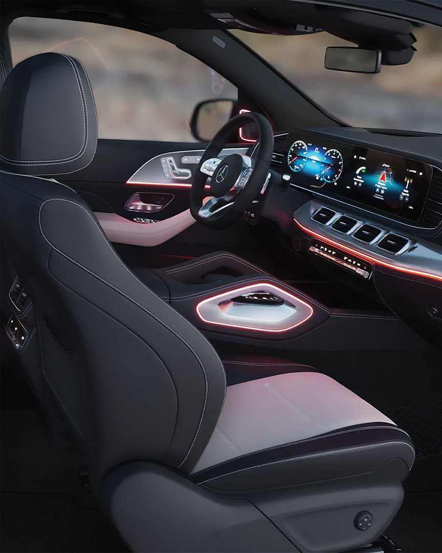Of course, the GLE 350 delivers the latest reassuring safety features. It will gently remind you to stay in your lane, constantly scans early-stage sensing traffic patterns to help prevent front collisions brace you for a rear-ender, and PRE-SAFE brake with Pedestrian Recognition. The radar-enabled Active Distance Assist keeps you safely behind cars ahead at a pre-selected distance and Evasive Steering Assist provides additional safety to avoid an obstacle at speed by tightening up the steering response.
